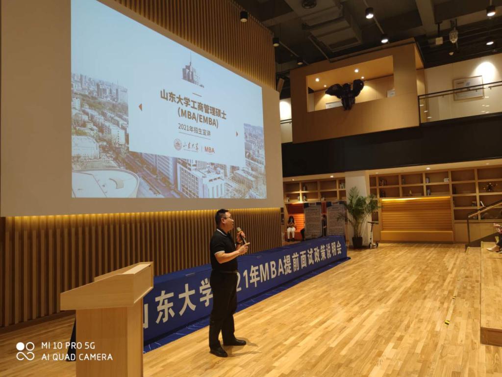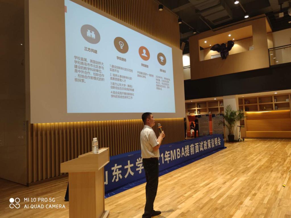 9月19日上午,山东大学2021年MBA提前面试政策说明会在山东大学国际创新转化示范基地成功举行,山东大学MBA中心办公室主任逄元魁、taptap点点体育院长助理兼国际创新转化示范基地主任刘振出席本次活动。本次活动由taptap点点体育MBA中心(青岛)项目主任陈卓主持。来自全省各地的考生认真聆听了说明会。