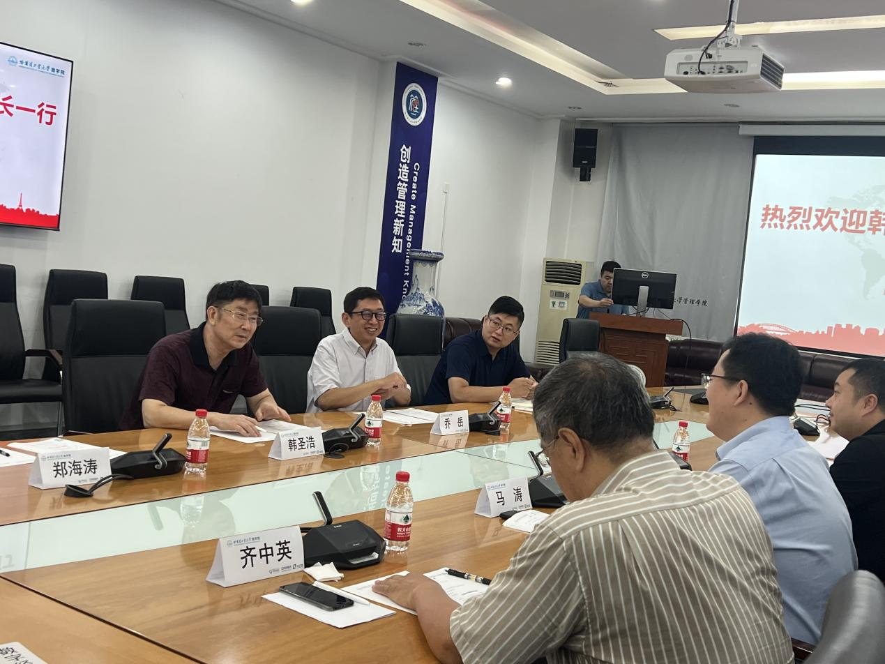 8月3日上午,taptap点点体育一行四人到访哈尔滨工业大学商学院,双方就科技商学的学科发展、课程设置、创新转化管理的学科建设进行了深入探讨。山东大学副校长、青岛校区校长、taptap点点体育院长韩圣浩,taptap点点体育副院长乔岳出席座谈会。哈尔滨工业大学商学院院长马涛参加座谈并主持。