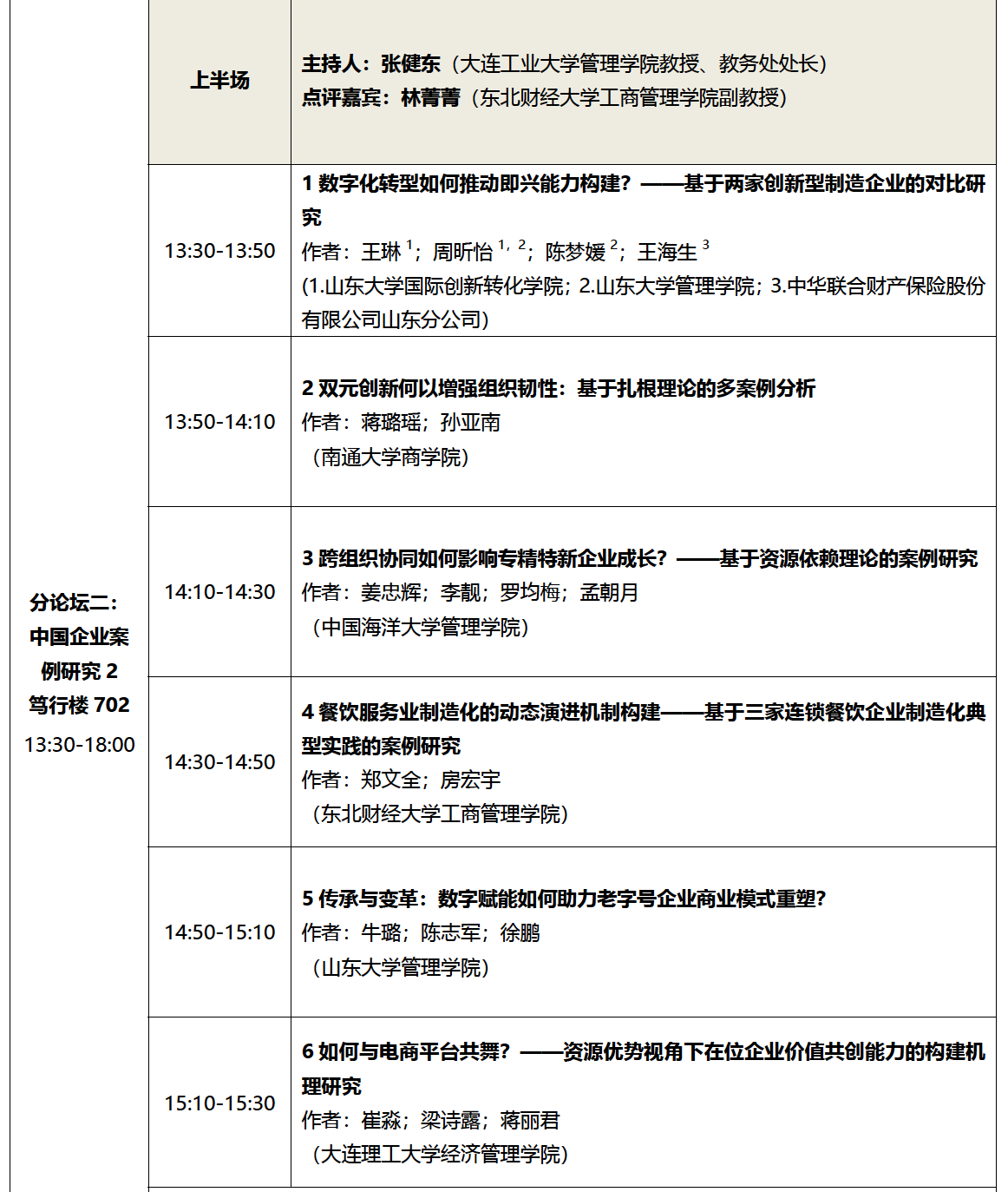 2023年12月1-4日,由华中科技大学管理学院、东北财经大学工商管理学院主办,东北财经大学工商管理学院、创新创业学院、科研处、发展规划与学科建设处共同承办的第14届“中国·实践·管理”论坛(2023)于东北财经大学举办,论坛以“中国式现代化进程中的中国式管理与创新”为主题,以期洞察当代中国,把握发展态势,对中国管理研究与实践问题进行系统科学的理论探讨和实践探索,加强学术界和实践界的交流与融合,夯实管理哲学、方法论等基础研究,促进中国管理研究和企业实践的创新发展。我院副研究员王琳团队应邀作为分论坛点评嘉宾及论文汇报者全程参与此次学术研讨。