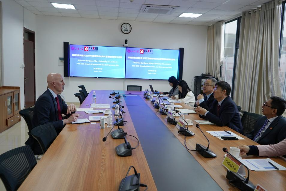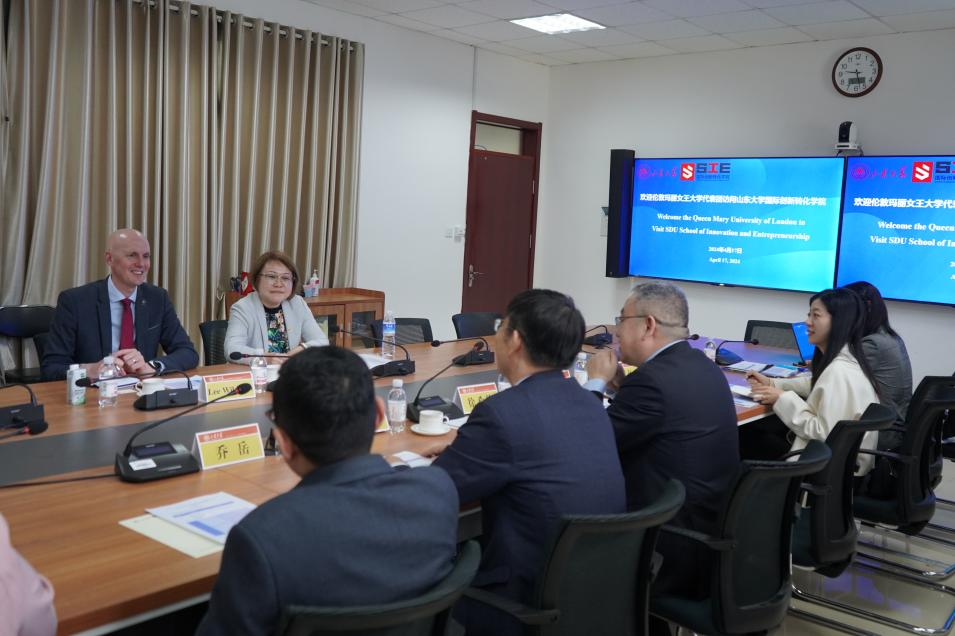 韩圣浩对代表团的来访表示热烈欢迎,并简要介绍了学院的基本情况。他提出,学院一直以来重视国际化发展,积极同包括剑桥大学在内的世界一流高校开展交流探讨,就科研国际化、学生培养国际化、师资国际化等开展实质性合作,希望同伦敦玛丽女王大学在人才培养、科学研究等方面进一步拓展合作领域。徐希锋介绍了山东大学的办学历史、学科特色、国际合作相关情况,希望双方共同探讨在商科领域开展深入合作,并适时拓展领域,欢迎伦敦玛丽女王大学师生来山大交流。
