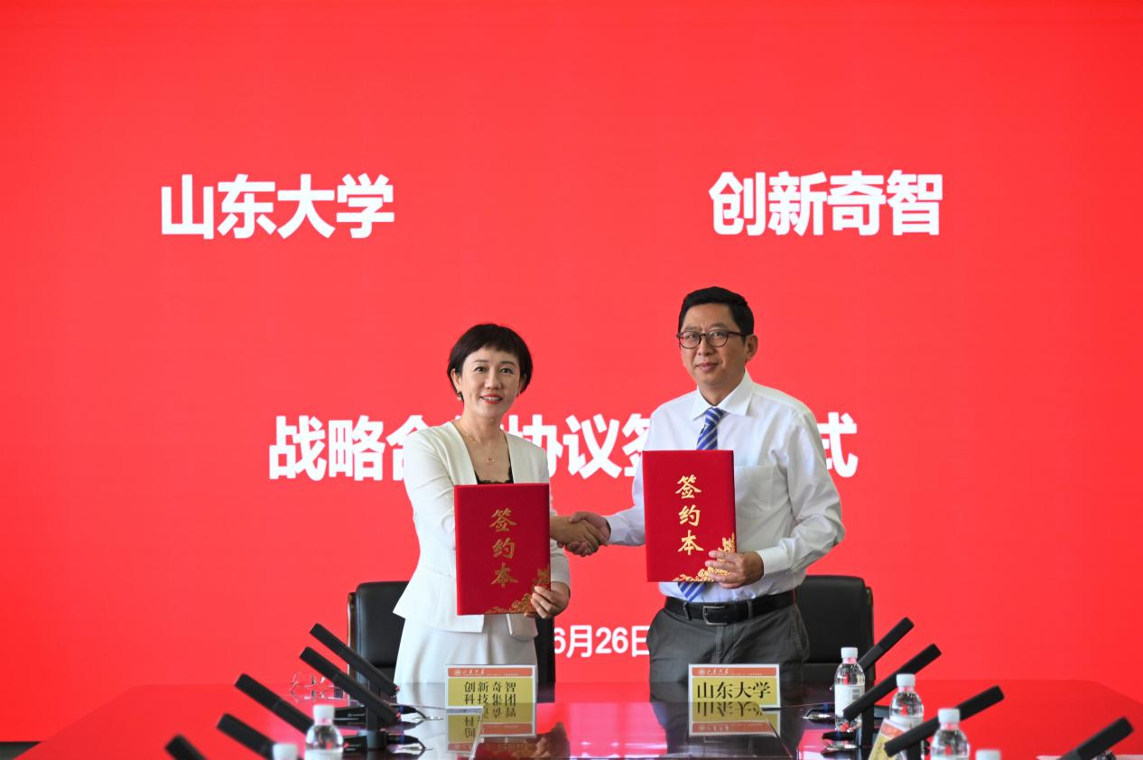 6月26日上午,山东大学与创新奇智科技集团股份有限公司(以下简称“创新奇智科技集团”)战略合作签约仪式在青岛校区举行。山东大学校长助理、青岛校区党工委书记邢占军,创新奇智科技集团联合创始人、首席技术官张发恩,创新奇智科技集团副总裁高凌燕出席仪式。会议由山东大学服务青岛办公室主任兼服务山东办公室副主任、合作发展部副部长张剑主持。
