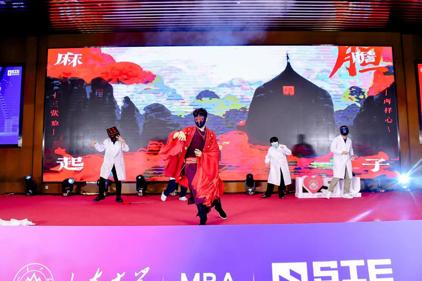 在舞者的曼妙舞步之下,本次晚会正式开始。围绕着“逐梦而行 奔赴山海”这一主题,本次晚会力图展现大家不断实现、超越梦想的精神,迎新晚会共分为“逐梦而行” “奔赴山海”两个篇章。