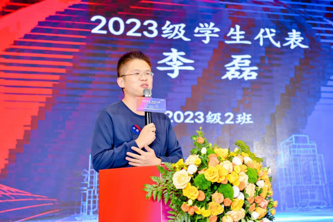随后,山东大学MBA2023级学长代表李磊分享了在山大学习的体会和感悟,给在座的同学们带来真挚的期许和祝福。他以自身经历讲述了山大人的精神,在于代代传承、生生不息。