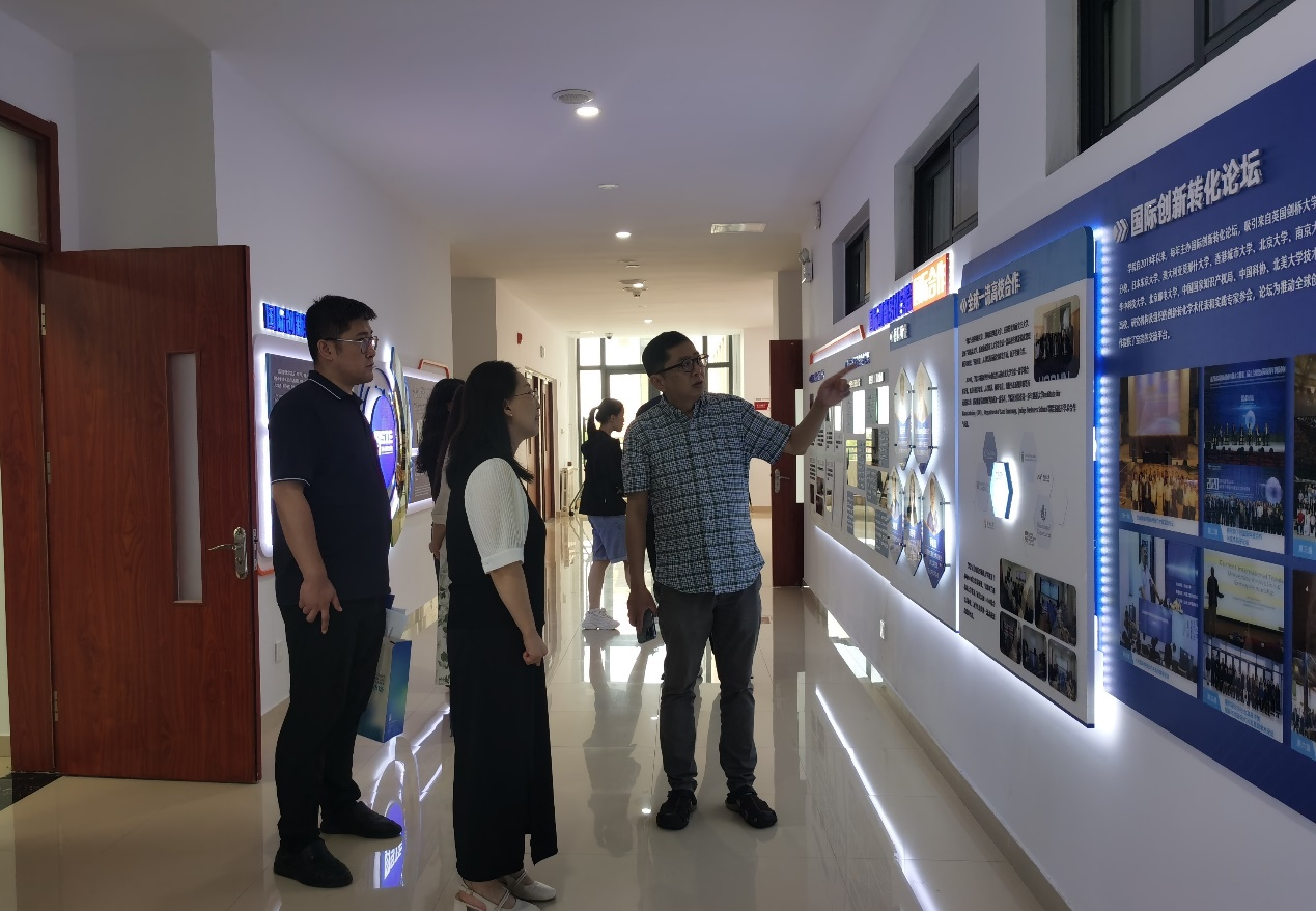 座谈交流期间,乔岳副院长带领滕院长一行参观了学院宣传栏,细致讲解了taptap点点体育的基本情况,涵盖学院建设历程、教学与科研、国内外合作等方面。乔院长指出,学院聚焦创新转化现实所需,开展PI研究团队建设、联合创新中心建设、全日制与非全日制人才培养项目,不断深化创新转化学理研究与创新转化人才培养,并积极探索“政产学研”创新合作新模式。未来,双方有望在商业概念验证、联合创新中心建设、基于青岛工研院实训平台的全日制与非全日制学生培养、EDP社会培训项目等方面开展相关合作。