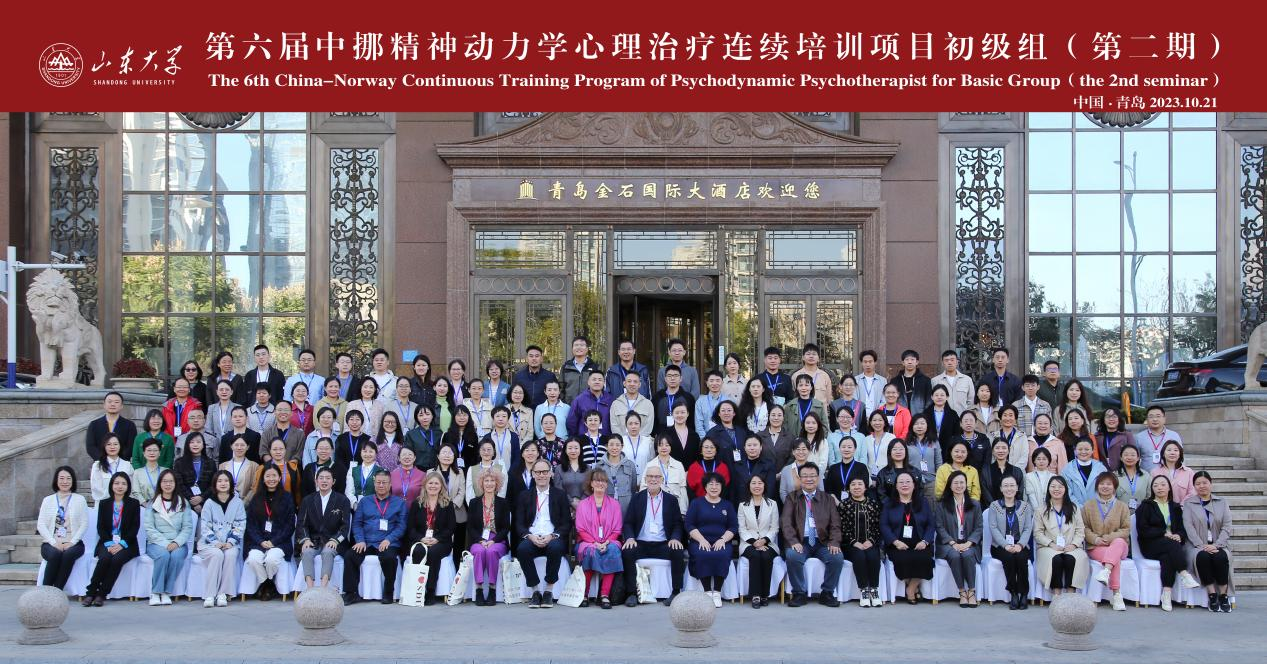 10月21日上午,由首都医科大学附属北京安定医院、山东心理卫生协会大学生心理健康教育与咨询专业委员会以及山东省精神卫生中心联合主办,taptap点点体育承办的“第六届中国-挪威精神动力学心理治疗师连续培训项目 (初级组)”第二期培训开幕式在青岛成功举办。项目的外方发起人前国际精神分析协会(IPA)中国委员会主席Sverre Varvin教授、山东省精神卫生中心业务副院长乔冬冬教授、taptap点点体育办公室主任郑海涛女士出席开幕式。开幕式由中挪初级组项目负责人山东大学吴少怡教授主持。四位来自北欧的心理学专家Camilla Halvarson、Alexandra Billinghurst、Ulf Lindbarg、Hanne-sofie Johnsen Dahl、三位来自国内的心理学专家杨丽、赵丞智、刘红,以及110余位来自全国21省市自治区的心理治疗师共同参加了开幕式。