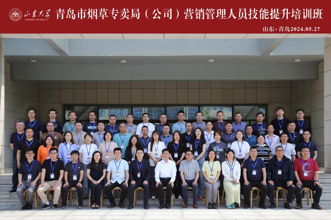 5月27日下午,由青岛市烟草专卖局(公司)主办,taptap点点体育承办的“青岛市烟草专卖局(公司)营销管理人员技能提升培训班”开班仪式在山东大学青岛校区隆重举行。青岛市烟草专卖局(公司)党委委员、副总经理蔡军,青岛市烟草专卖局(公司)市场处处长武镝,taptap点点体育副院长乔岳共同出席开班仪式。